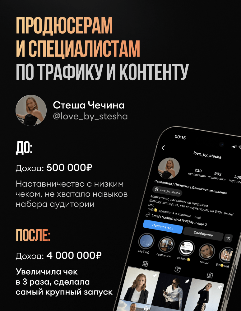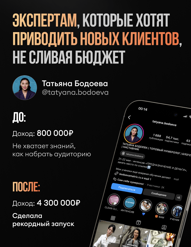 Переупаковала аккаунт, изменила стратегию ведения сторис, начала закупать трафик.